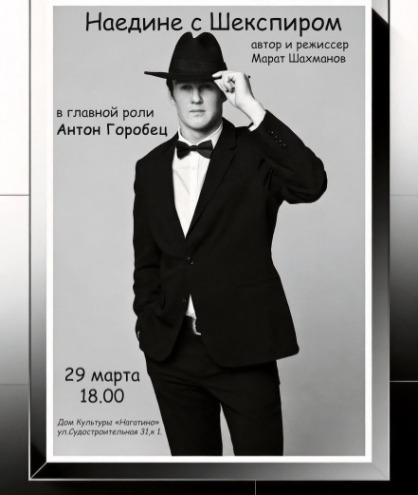 Премьера в театре ПилигриМ! Спектакль «Наедине с Шекспиром». – Встреча с великим автором на сцене. Возможность увидеть классика таким, каким мы его никогда не знали, представить, что бы сказал он, появившись в наше время в самой гуще событий. Фантасмагория, философская исповедь с элементами буффонады и уличного театра с уникальными номерами от артистов театра ПилигриМ!